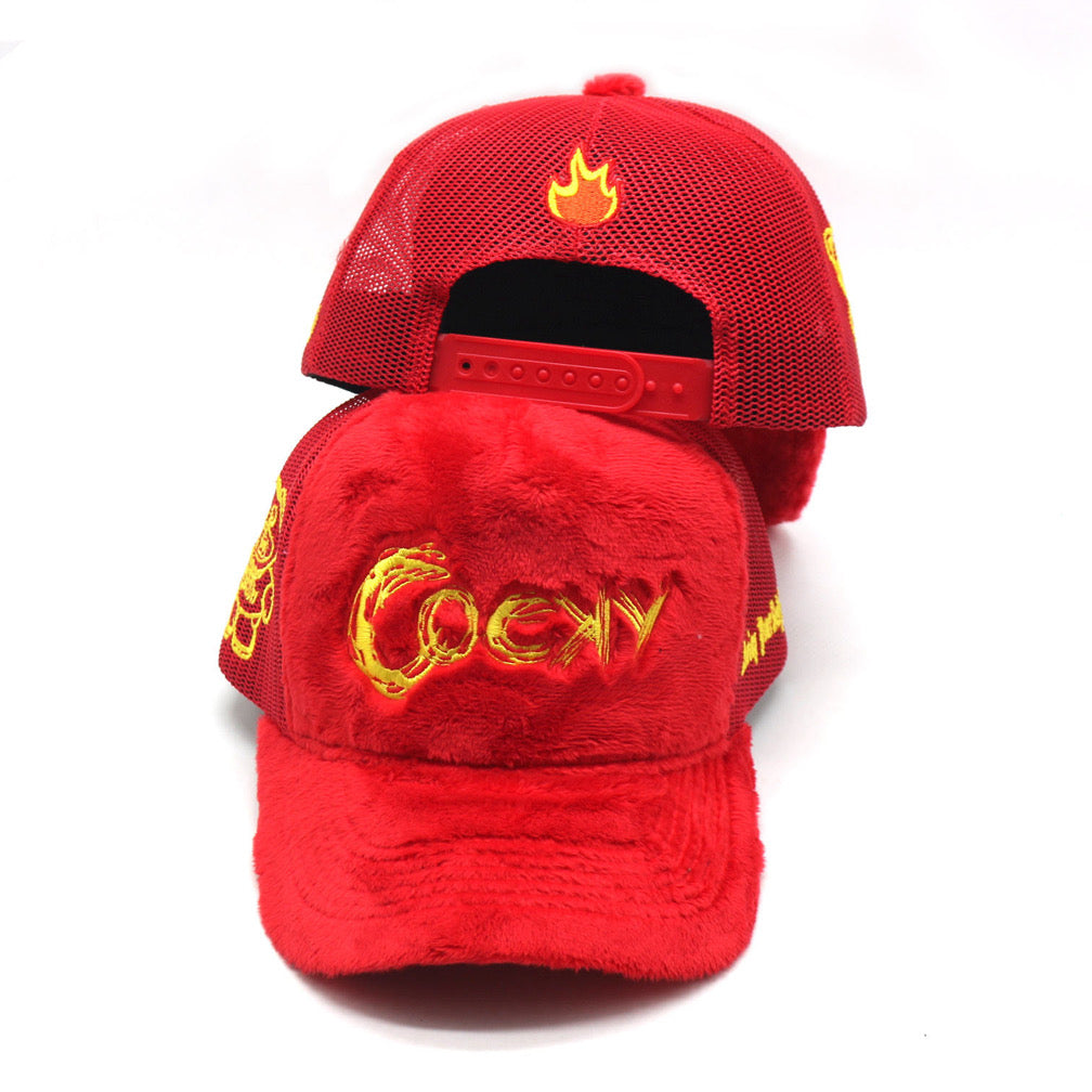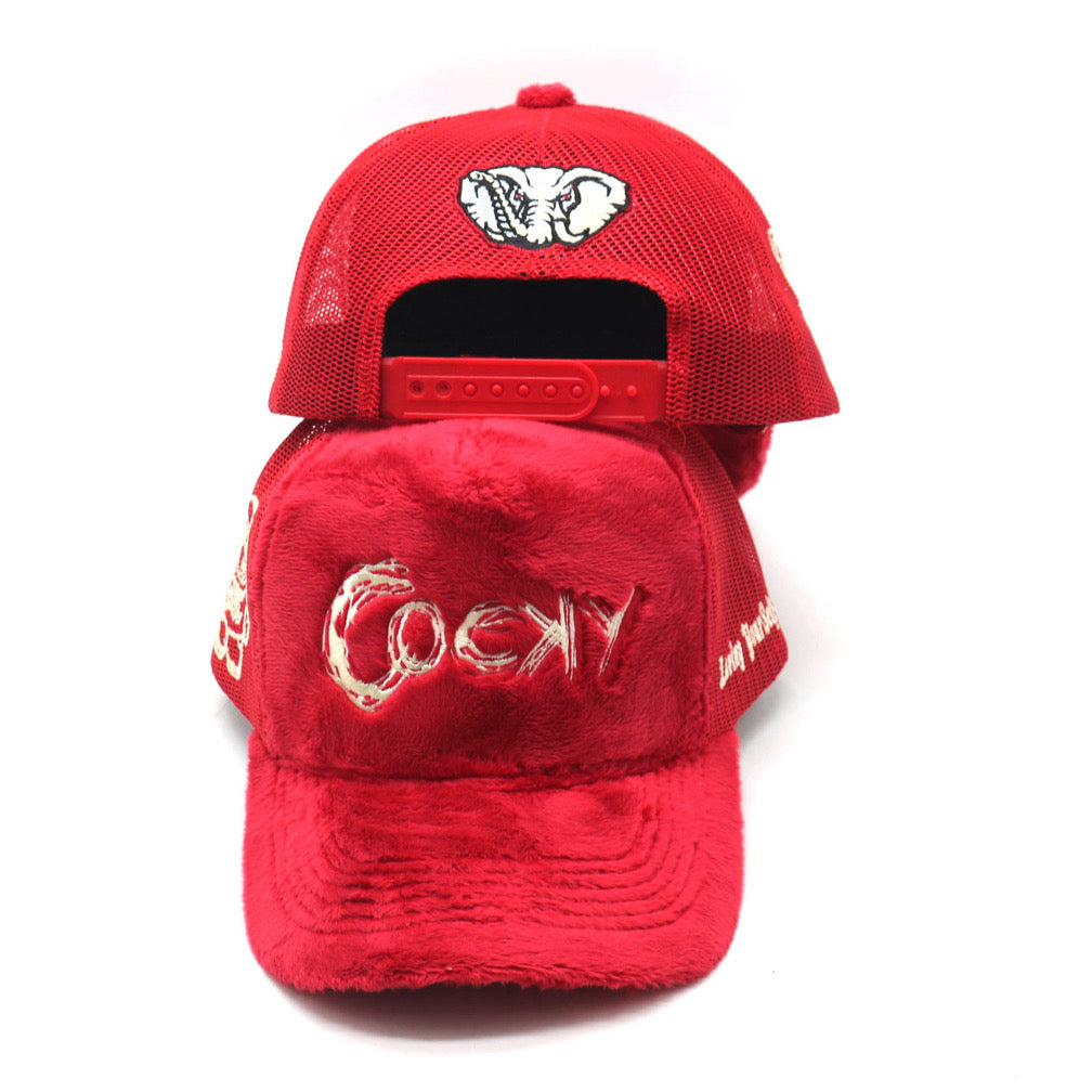 COCKY FUZZY EMBROIDERED TRUCKER HAT